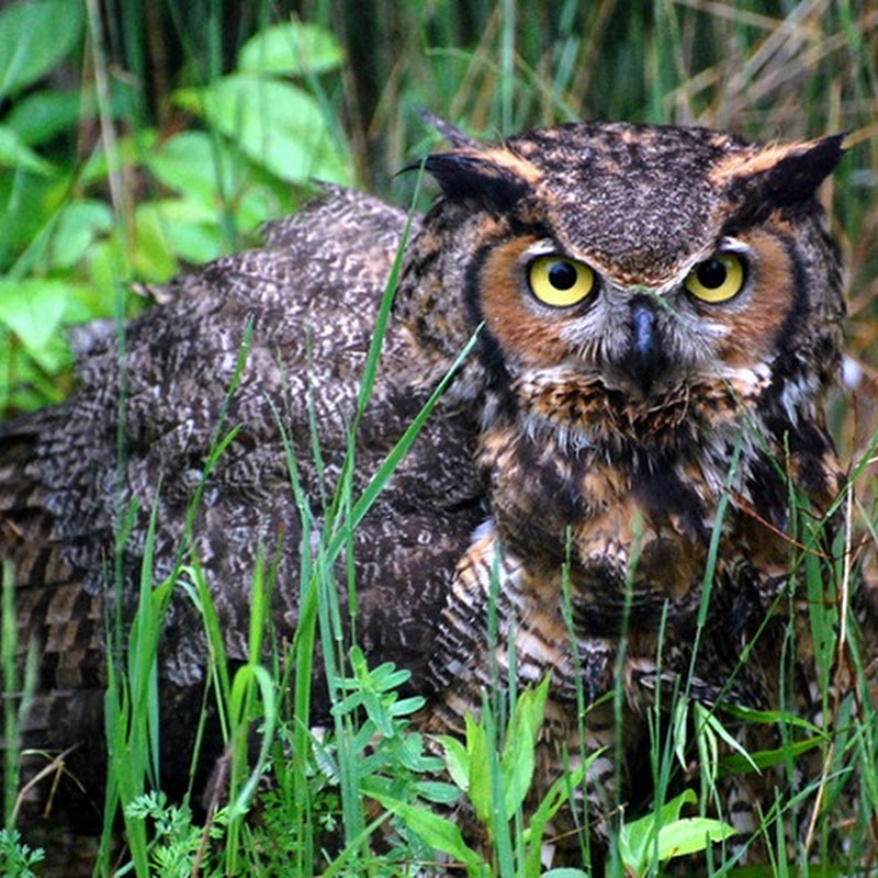 A QUIET MORNING ENCOUNTER WITH A GREAT HORNED OWL......ON THE GROUND